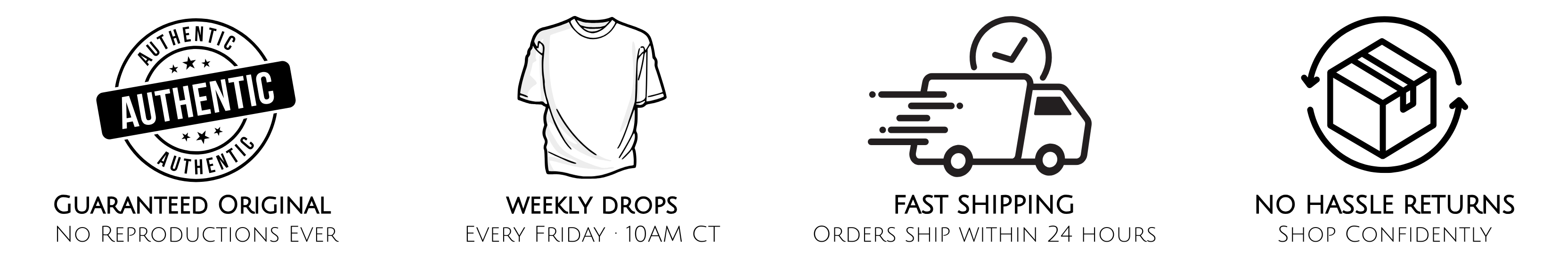 The most common reason for returns is sizing issues. Please take a moment to go over our sizing chart to make sure you know you’re buying a shirt that will fit. In the unfortunate circumstance you need to make a return, please contact us with your order # and let us know you’d like to start a return request. If you can’t find your order # no worries, we can look it up. Please ship your return within 14 days of receiving your order. Once delivered, we will issue store credit for the amount of item purchased.