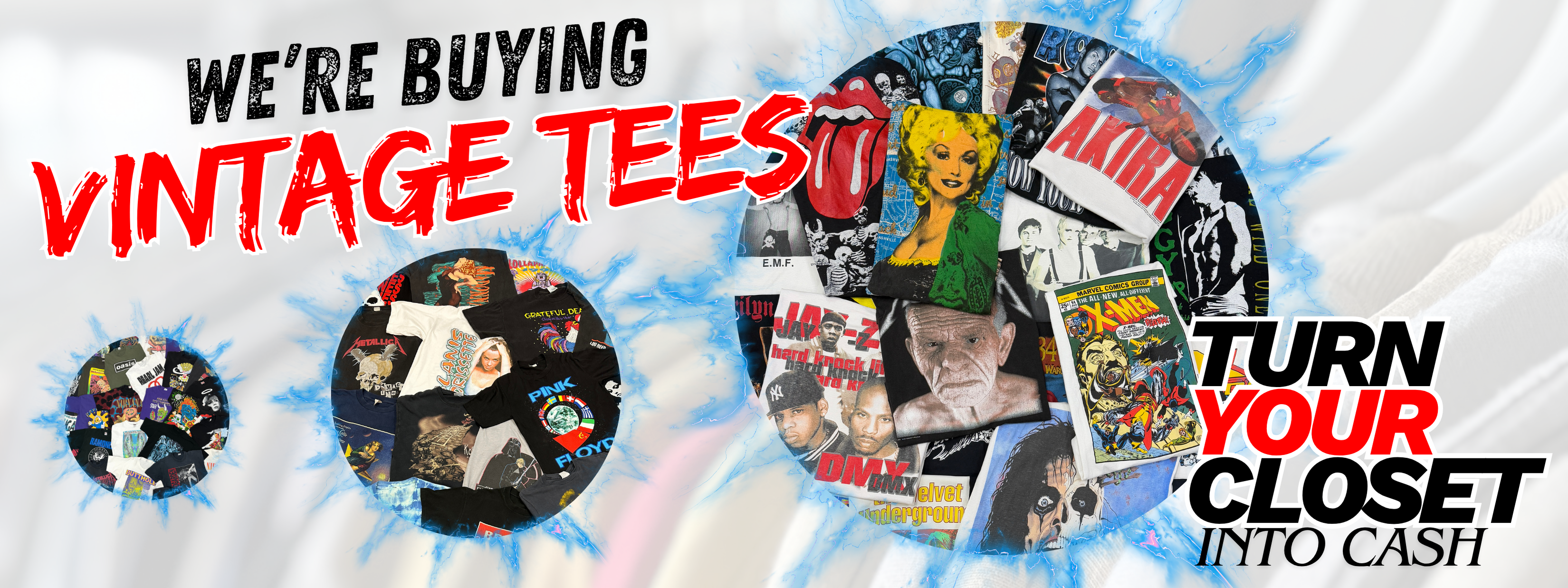 We’re buying vintage concert, band, sports and pop culture shirts from the 1970s through early 2000s. Vintage means 20+ years old. Email photos to shirts@wycovintage.com or fill out the form below to get started.
